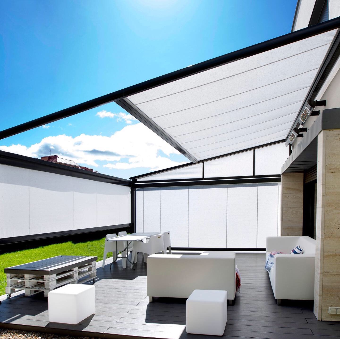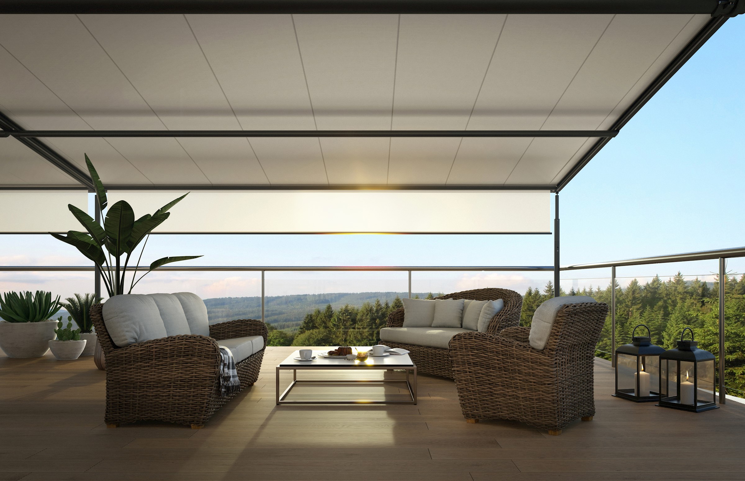 De tracfix doekgeleiding en gasdrukveren zorgen voor een optimaal strak doek in alle standen en windbestendigheid tot windkracht 6.
