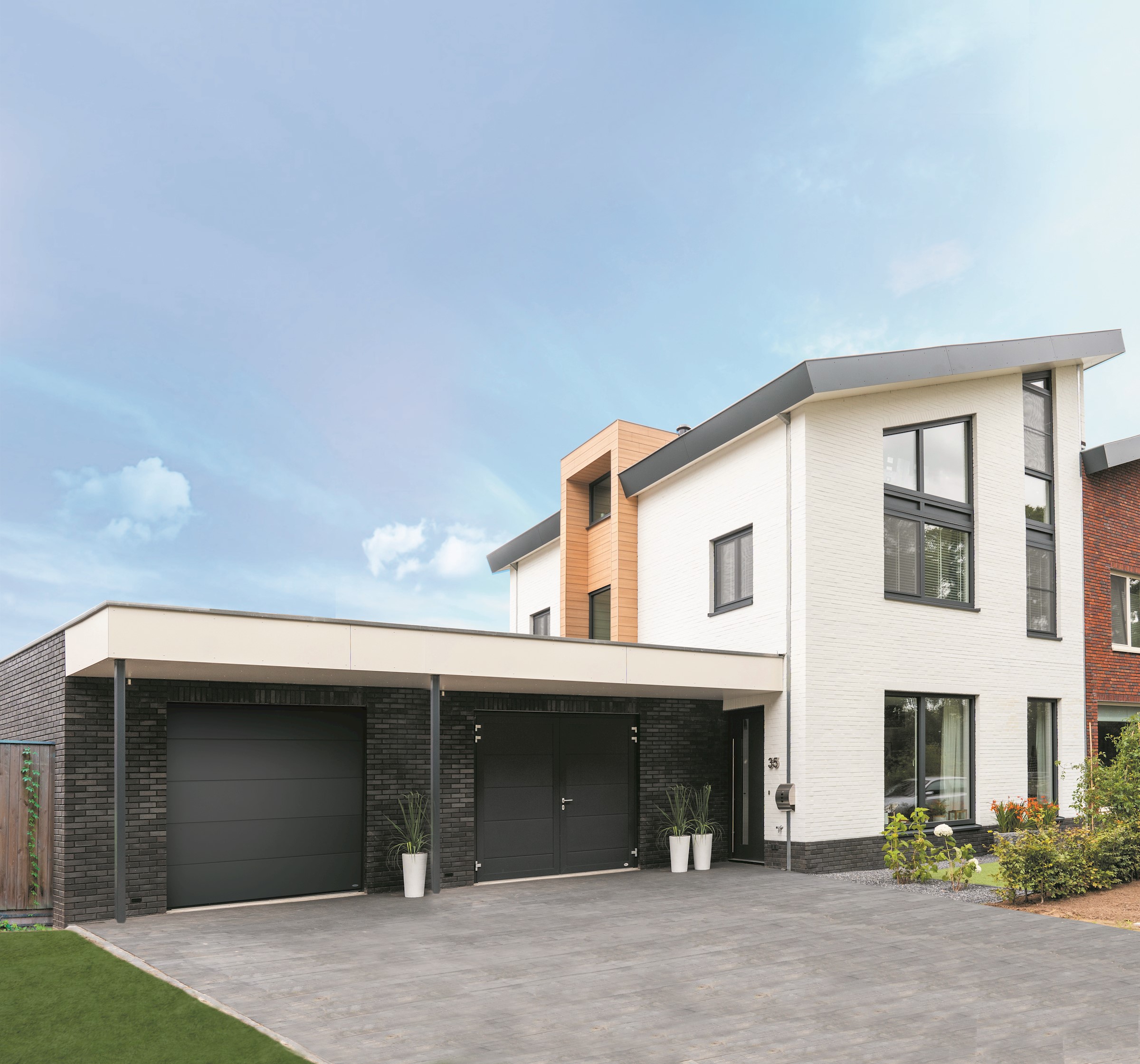 Een sectionaaldeur biedt comfort, isolatie, een hoge veiligheid en optimale ruimtebesparing. De sectionaaldeur dankt haar naam aan de losse secties die met scharnieren aan elkaar bevestigd zijn. Dankzij deze scharnierende secties heeft de garagedeur aan zowel de binnenzijde als de buitenzijde geen extra ruimte nodig om te openen.