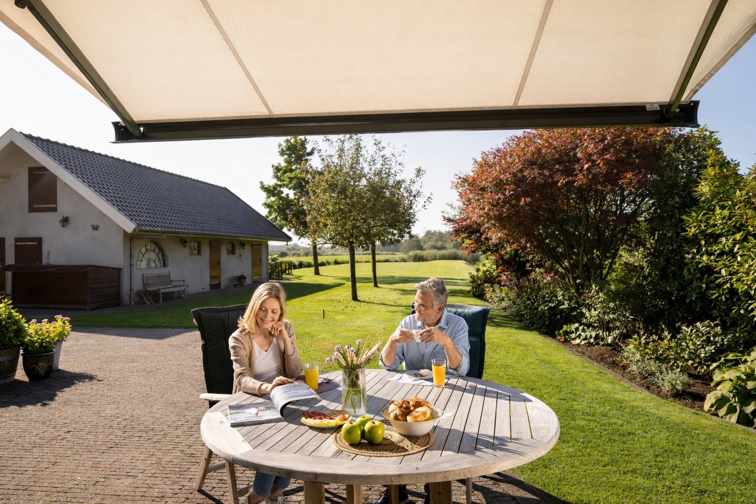 Dankzij een serre of overkapping kun je vanaf vroeg in het voorjaar tot ver in de herfst genieten van het buitenleven. In de volle zomerzon lopen de temperaturen al snel flink op onder een glazen dak. Serrezonwering biedt dan de uitkomst. Met een simpele handeling creëer je eenvoudig schaduw op je terras of in je serre. Eén druk op de knop en de schaduw verschijnt automatisch. De zonweringen van Ambiance kunnen oneindig gekoppeld worden en daarom is geen dak te breed!