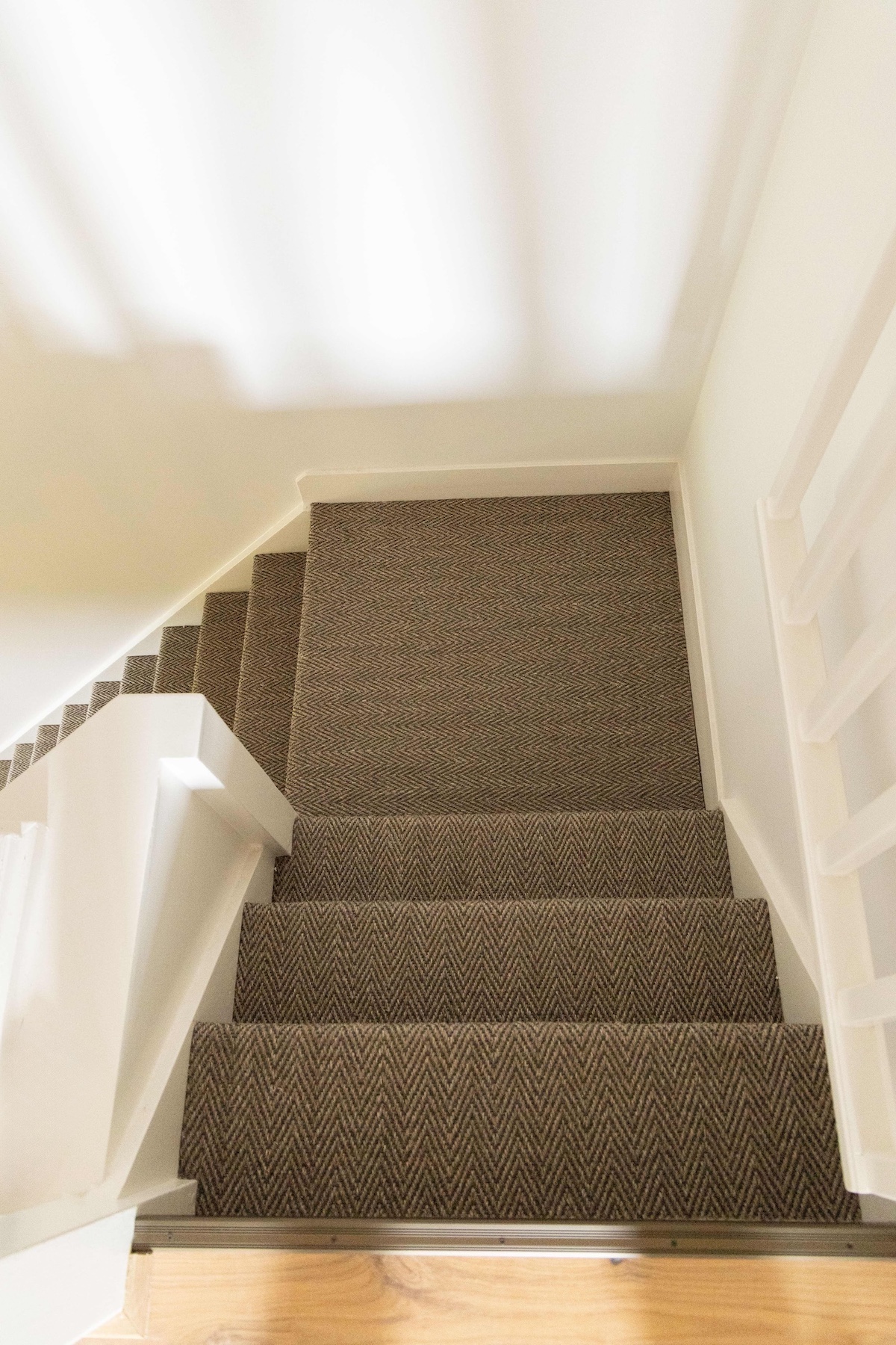 - Wollen tapijt: Bekend om zijn natuurlijke warmte en matte uitstraling. Wol is duurzaam en ideaal voor een stijlvolle, tijdloze trap.