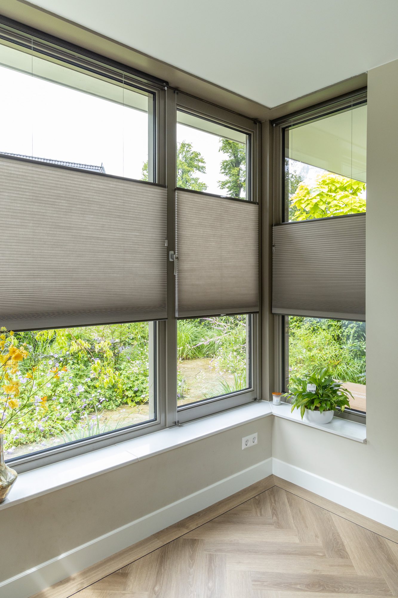 "Wat ons vooral aansprak aan de Duette® Shades is het top-down/bottom-up systeem. Hiermee kunnen we zowel de boven- als onderkant van de shades afzonderlijk bewegen. We kiezen er bijvoorbeeld voor om de onderkant dicht te doen voor privacy, maar houden de bovenkant open voor lichtinval en een vrij uitzicht naar buiten. Hierdoor hebben we geen last van inkijk, terwijl we toch kunnen genieten van het daglicht."