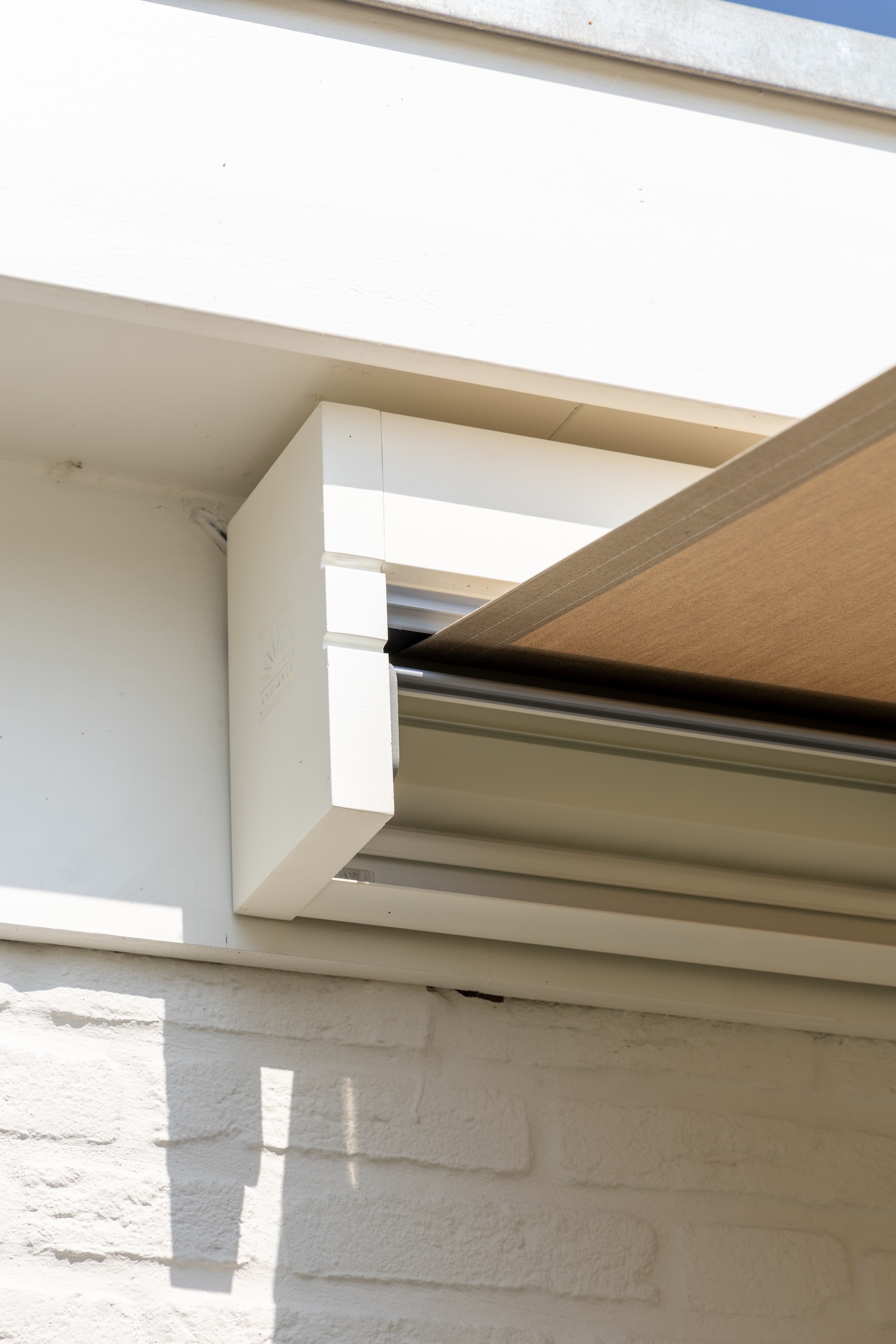 Voor hun nieuwe woning wilden ze een zonweringoplossing die perfect aansloot bij de moderne uitstraling van de gevel, zonder dat deze in het oog springt. De keuze viel op het Flatline XL knikarmscherm, vanwege het grote formaat, de rustige vormgeving en de mogelijkheid om het zonnescherm in exact dezelfde kleur als de deklijst van de uitbouw uit te voeren. Het resultaat is een naadloos geïntegreerde terraszonwering, die nauwelijks zichtbaar is wanneer het scherm is ingetrokken.