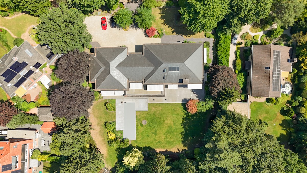 De gekozen Opal knikarmschermen zijn bij uitstek geschikt voor grotere gevels en diepe terrassen. Dankzij de stabiele constructie en krachtige motoren bieden deze zonneschermen uitstekende bescherming tegen felle zonnestralen en hitte, zonder afbreuk te doen aan het ontwerp van de woning. Omdat de schermen zijn weggewerkt achter de boeidelen, blijft het zicht op de villa in Bilthoven volledig vrij van technische elementen. Pas wanneer de zon zich aandient en de schermen worden uitgezet, zie je dat het huis is uitgerust met hoogwaardige terraszonwering.