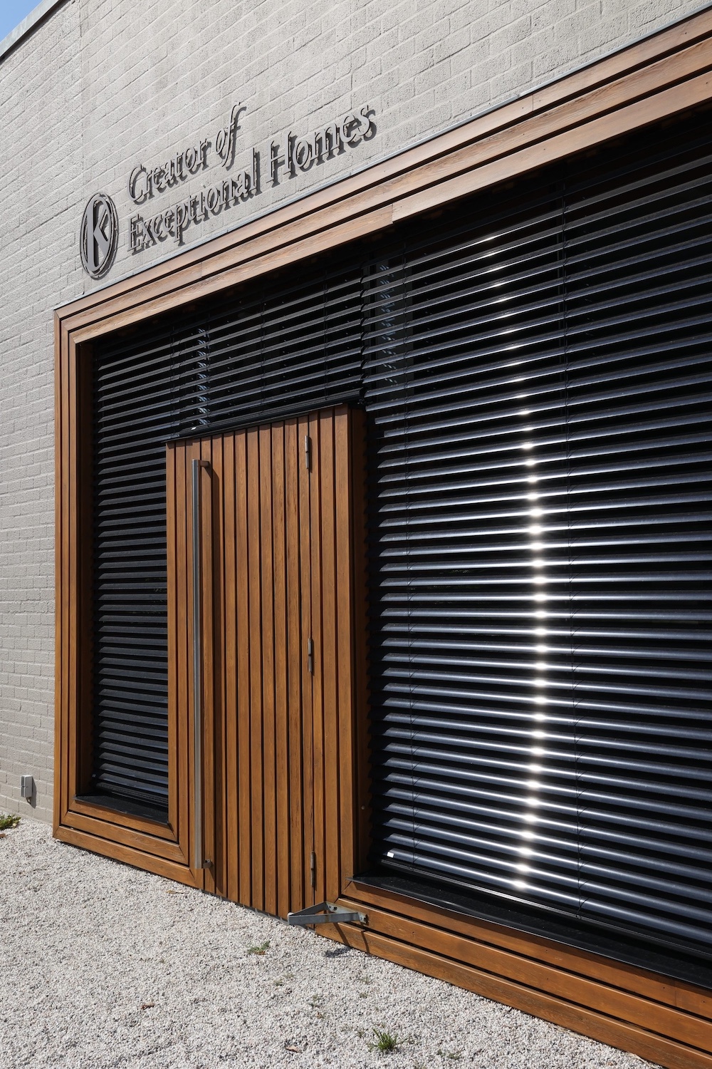 "We wilden meer privacy en een manier om de lichtinval te reguleren. Op een zonnige dag werd het werken lastig door het directe zonlicht op onze computerschermen," legt Kabaz uit. "Buitenjaloezieën zijn voor ons de ideale oplossing. Hiermee kunnen we het licht precies zo regelen dat we geen last hebben van schitteringen, maar wel een mooi natuurlijk licht binnenkrijgen."
