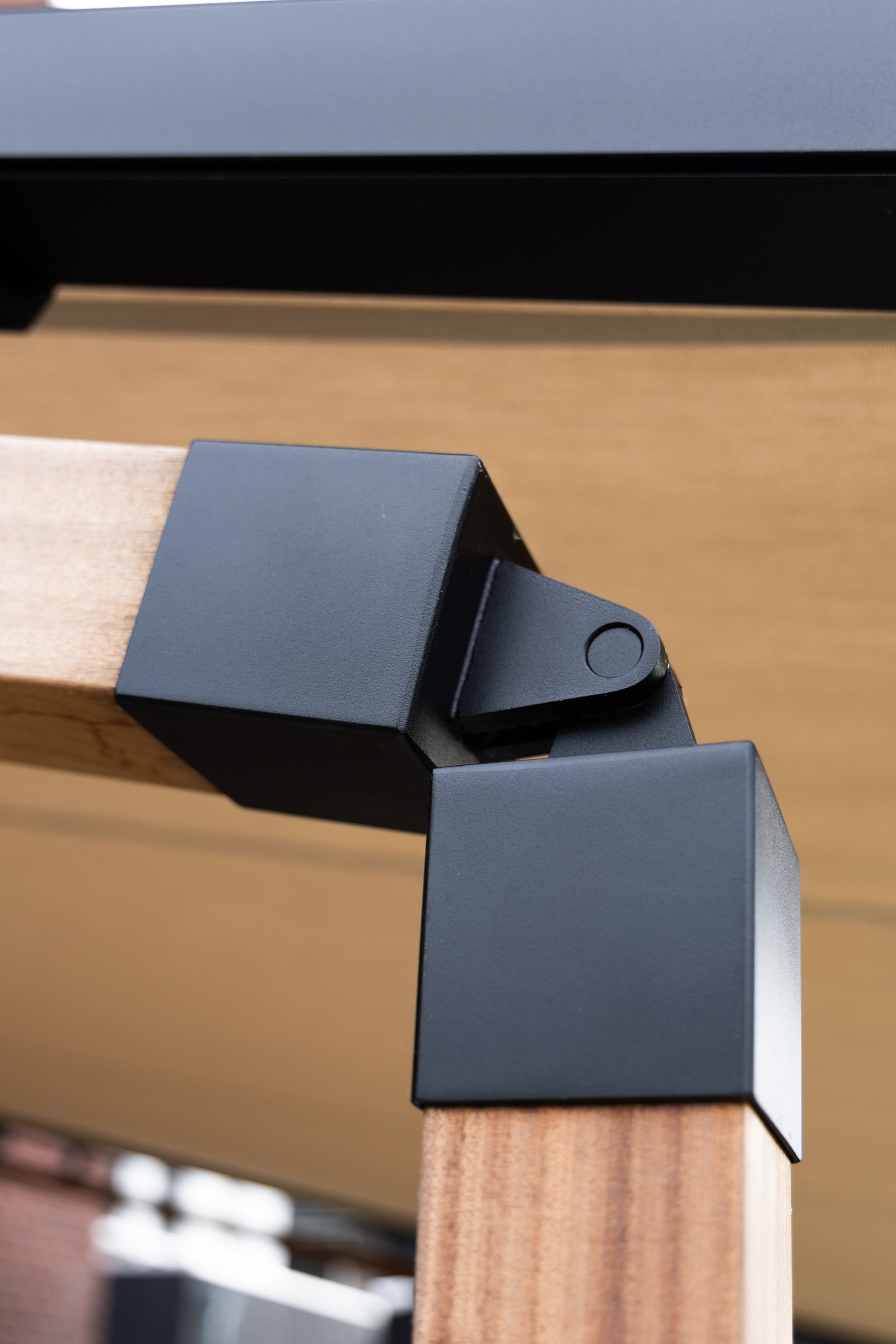 De Legno Duro Houten Doekoverkapping combineert de tijdloze charme van duurzaam hardhout (Merbau) met de flexibiliteit van een textieldak, wat resulteert in een elegante en robuuste toevoeging aan elke tuin of terras. Dankzij de natuurlijke uitstraling van het hout en de hoogwaardige roestvrijstalen details gaat deze overkapping moeiteloos op in zijn omgeving en biedt hij jarenlang comfort.