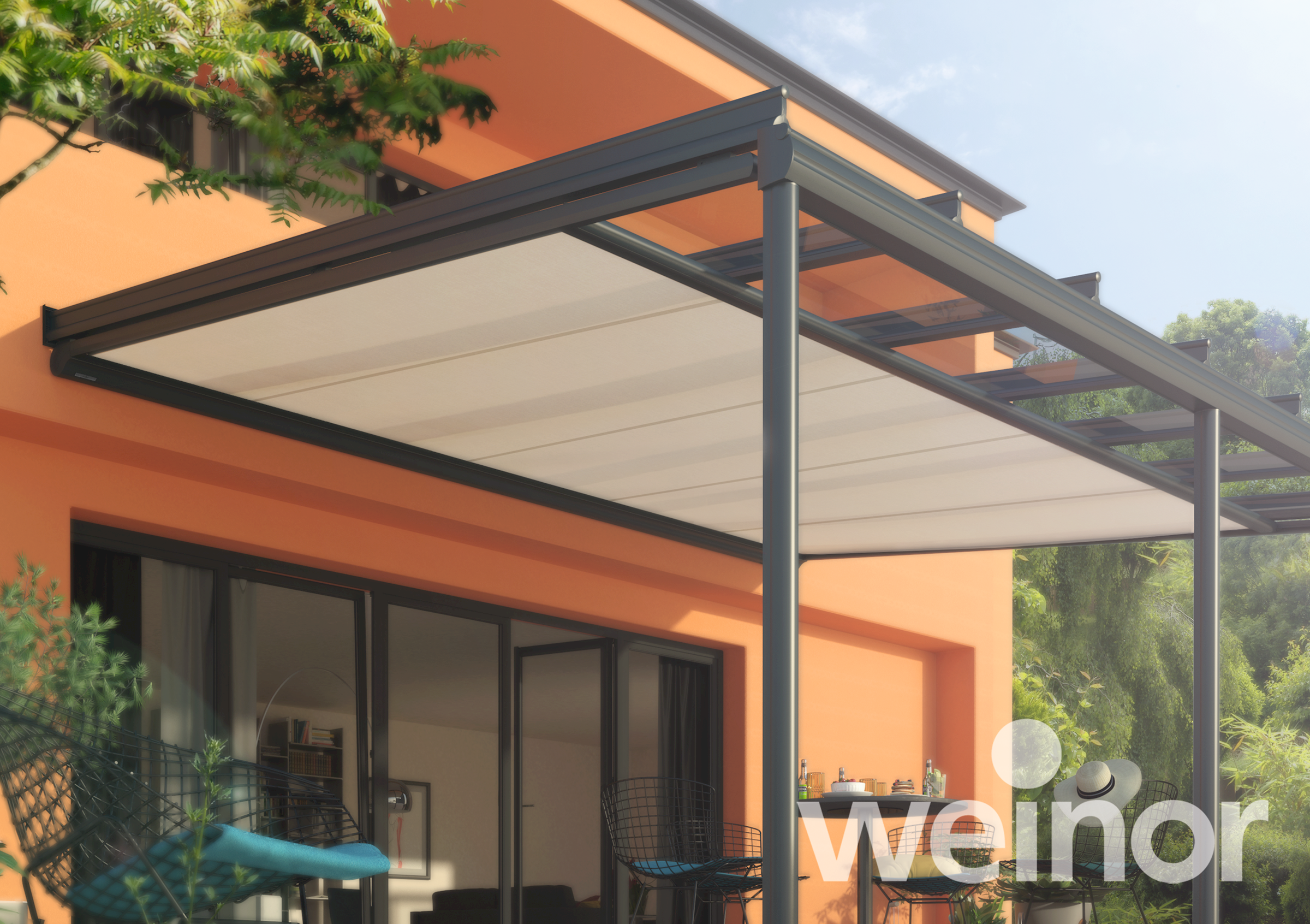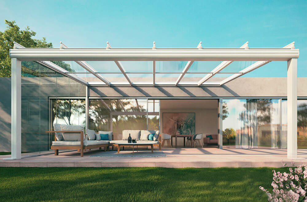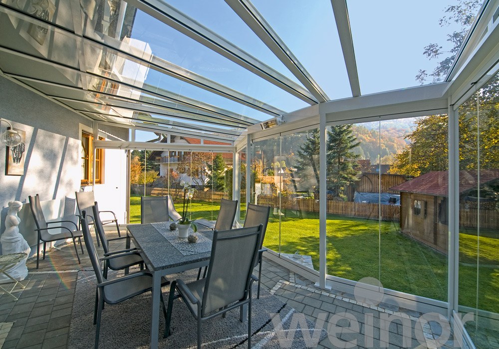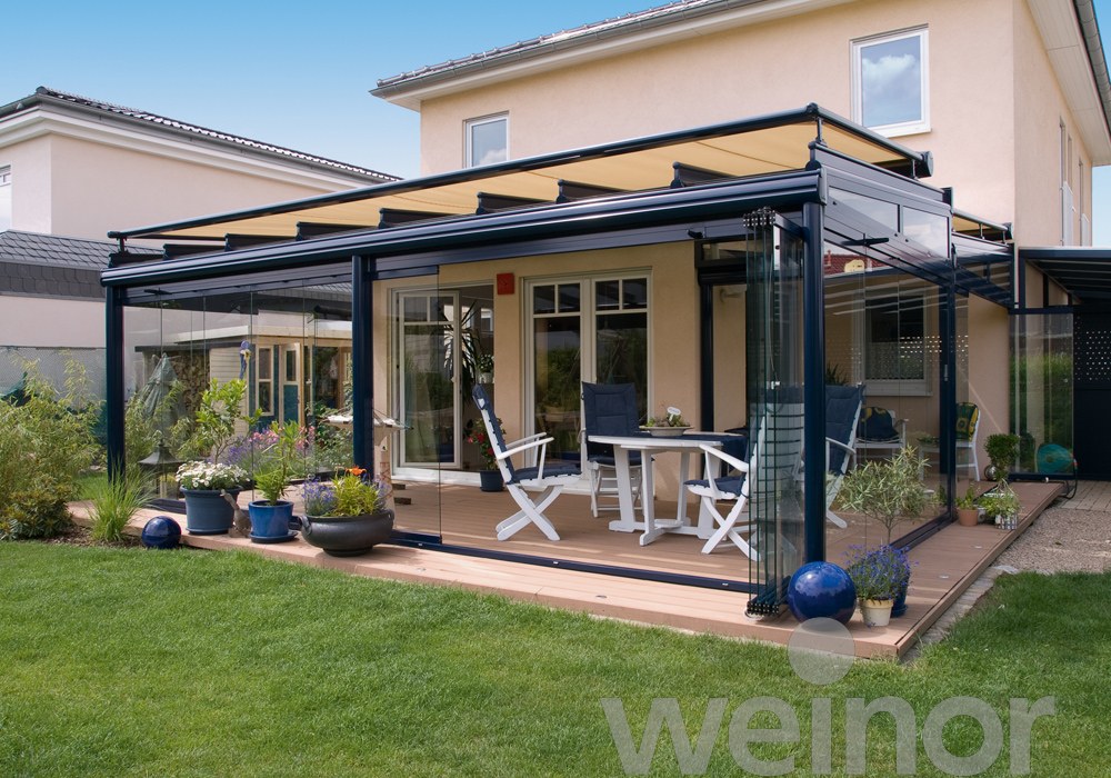 Voor extra beschutting tegen wind en regen kun je de Terrazza Originale uitbreiden met glazen wanden. Zo creëer je een compleet gesloten “Glasoase®” – een weersecht buitenverblijf